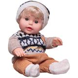 Пупс Junfa 34 см в светло-бежевой с орнаментом толстовке, шапочке, коричневых брюках