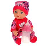 Этот милый пупс с детально проработанным личиком обязательно понравится вашей малышке. Куколка одета в красочный комбинезон в розово-фиолетовый цветовой гамме с милым принтом. На голове - шапочка в тон. Одежда легко снимается и надевается. Очаровательный пупс непременно вдохновит девочку на множество интересных сюжетов для игр, тем более его можно купать в воде, кормить и сажать на горшок. Благодаря компактному размеру игрушку можно повсюду брать с собой.
