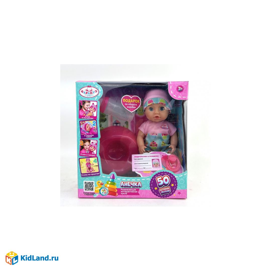 Пупс озвуч Шаинский музыка 20 см, пьет, писает, закр. глазки, 3 акс, 100 фраз КАРАПУЗ