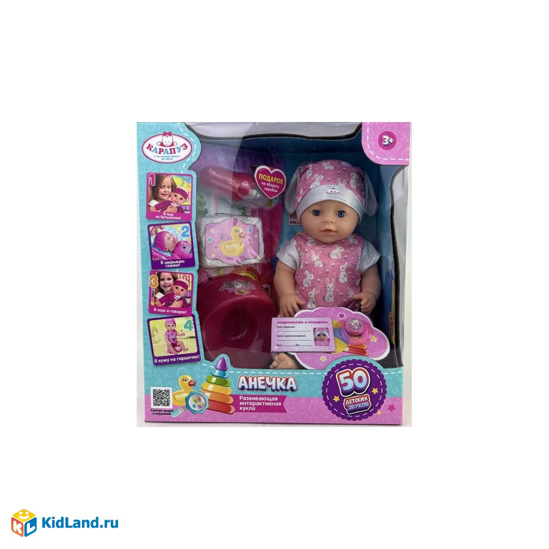 Пупс озвуч Шаинский музыка 40 см, пьет, писает, закр. глазки, 4 акс, 2000 слов КАРАПУЗ