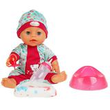 Милый пупс Оленька, с детально проработанным личиком, обязательно понравится вашей малышке. Кукла одета в очаровательное боди с симпатичным принтом. На голове у пупса - шапочка в тон. Одежда легко надевается и снимается.