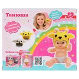 Танюшу можно купать. Ребёнку будет интересно менять образы куклы, одевая на неё разные шапочки (легко снять и надеть). Лицо пупса детально проработано.