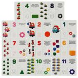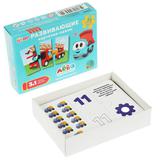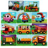 В наборе 11 картинок, каждая из которых разделена на 3 части. Задача ребёнка – подобрать части пазлов так, чтобы собралось изображение той или иной машинки. Благодаря небольшому количеству деталей, малыш без труда сможет выполнить задание, с каждым разом делая это всё лучше и быстрее. Кроме того, на оборотной стороне пазлов содержится информация о цифрах, цветах и формах, поэтому помимо игры в пазлы малыш будет получать полезные знания и знакомиться с окружающим миром.