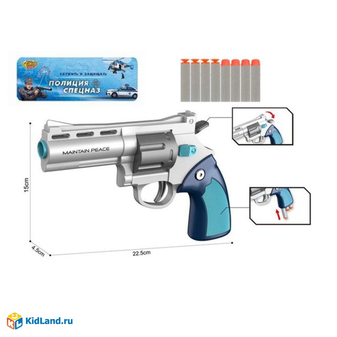Револьвер механический с мягкими пулями, в комплекте мягкие пули 8шт., пакет