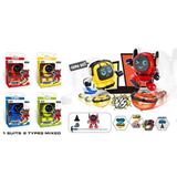 Надоело просто играть с фигуркой - снимите ножки у робота, потянув за них вниз, вставьте в отверстие на корпусе пусковое устройство, потяните, и робот будет вращаться.