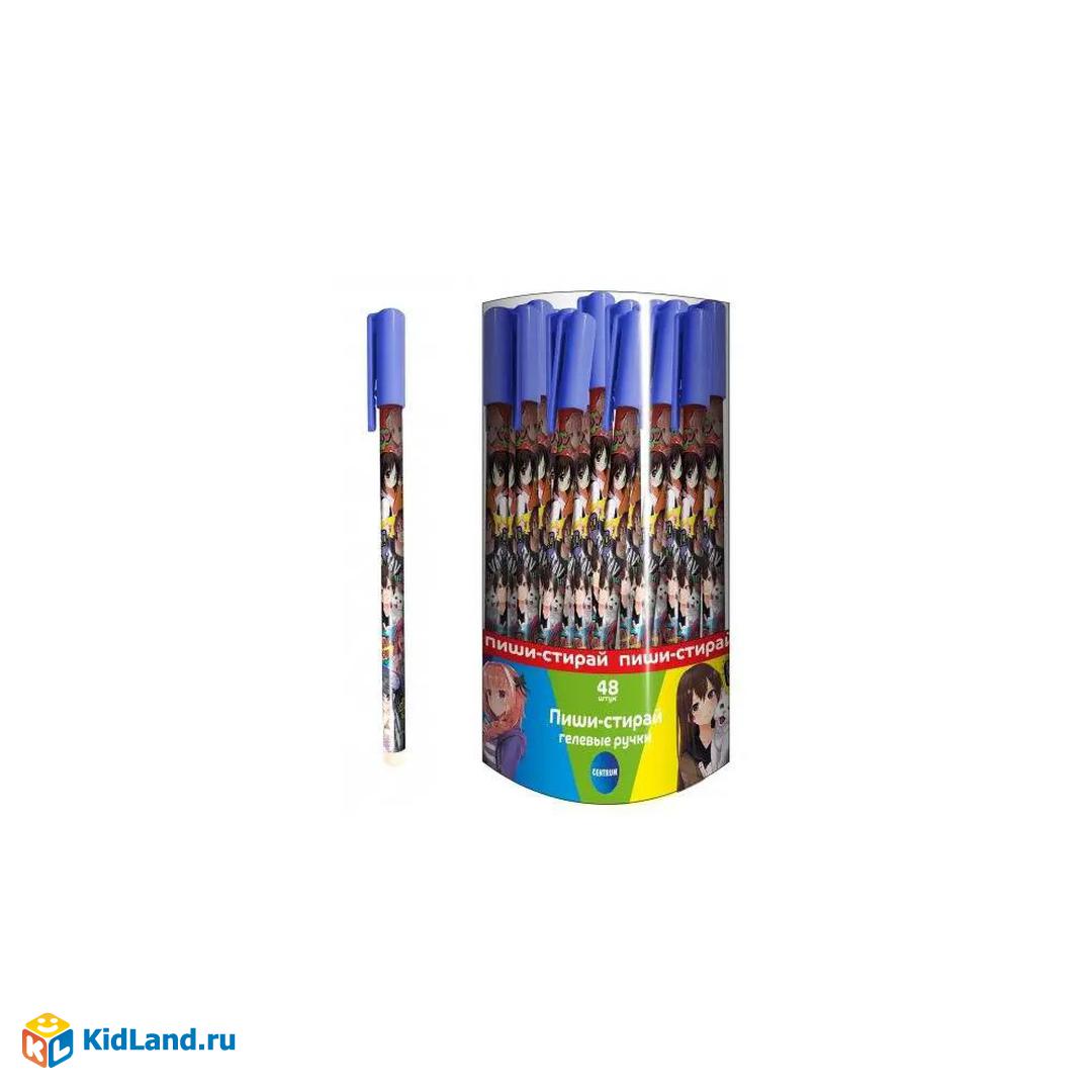 Ручка CENTRUM Аниме Подружки, гелевая прорезиненная со стираемыми чернилами, синяя 0,5 мм