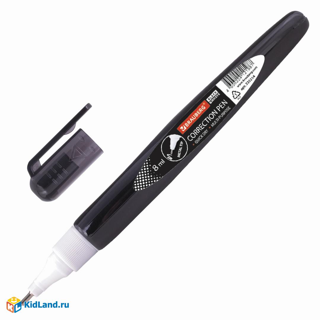 Ручка-корректор BRAUBERG 8 мл, метал наконечник, черный корпус, 225214