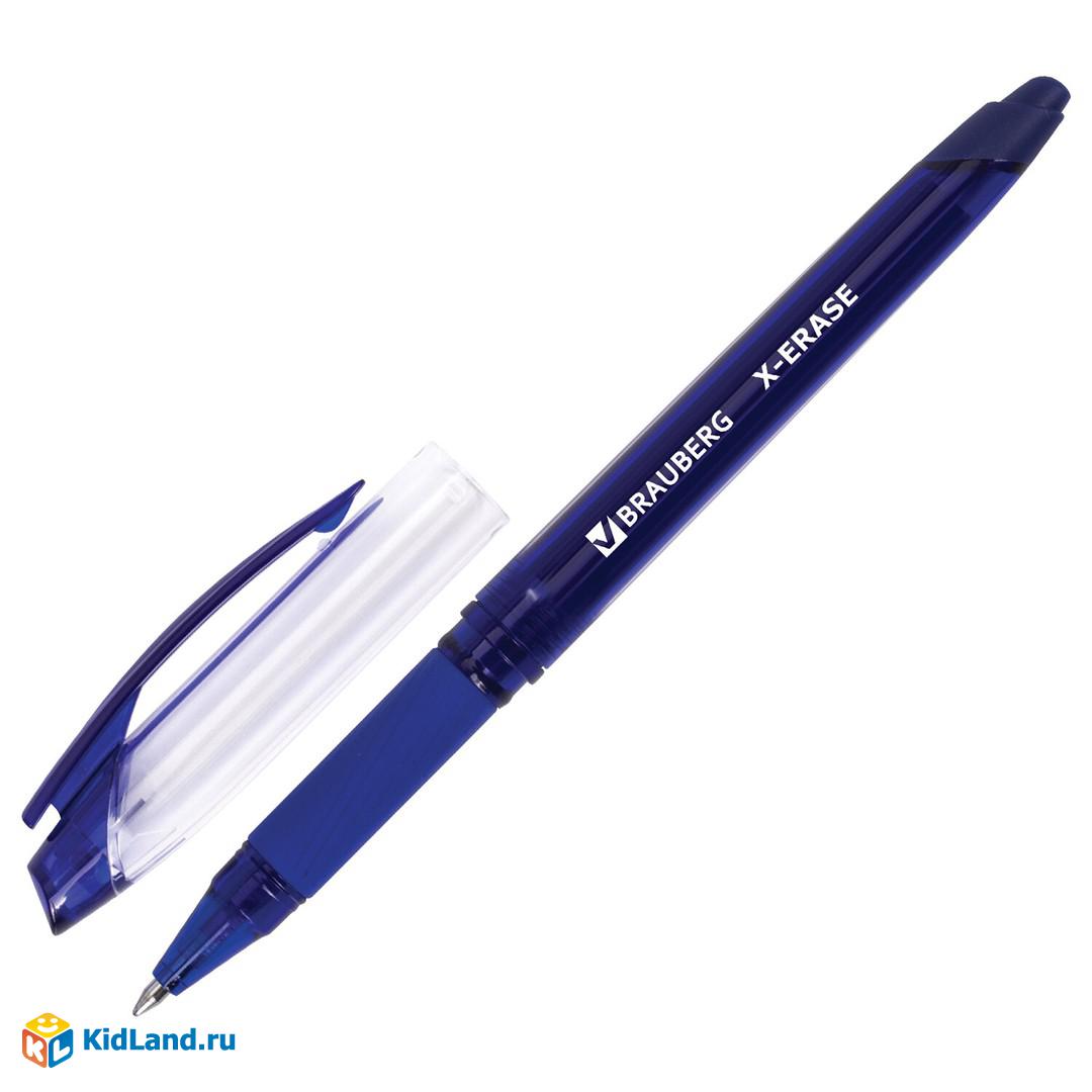 Ручка стираемая гелевая с грипом BRAUBERG "X-ERASE", СИНЯЯ, корпус синий, узел 0,7 мм, линия письма