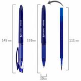 Ручка пишет специальными гелевыми чернилами синего цвета. Для удаления надписи её необходимо потереть специальным ластиком, встроенным в корпус ручки. При письме и стирании ручка не повреждает бумагу, делая исправления незаметными. Диаметр пишущего узла 0,7 мм создает тонкую линию письма, равную 0,35 мм. Резиновый держатель для комфортного и длительного использования. Стильный корпус тонированного синего цвета с синими деталями и прозрачным колпачком.
