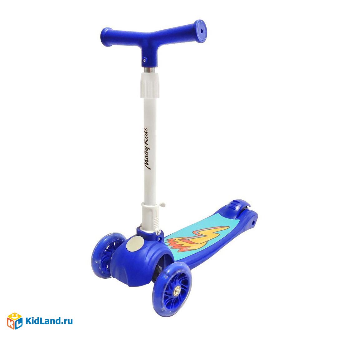 Самокат Moby Kids FLY, складной, 120 PU со светом, синий