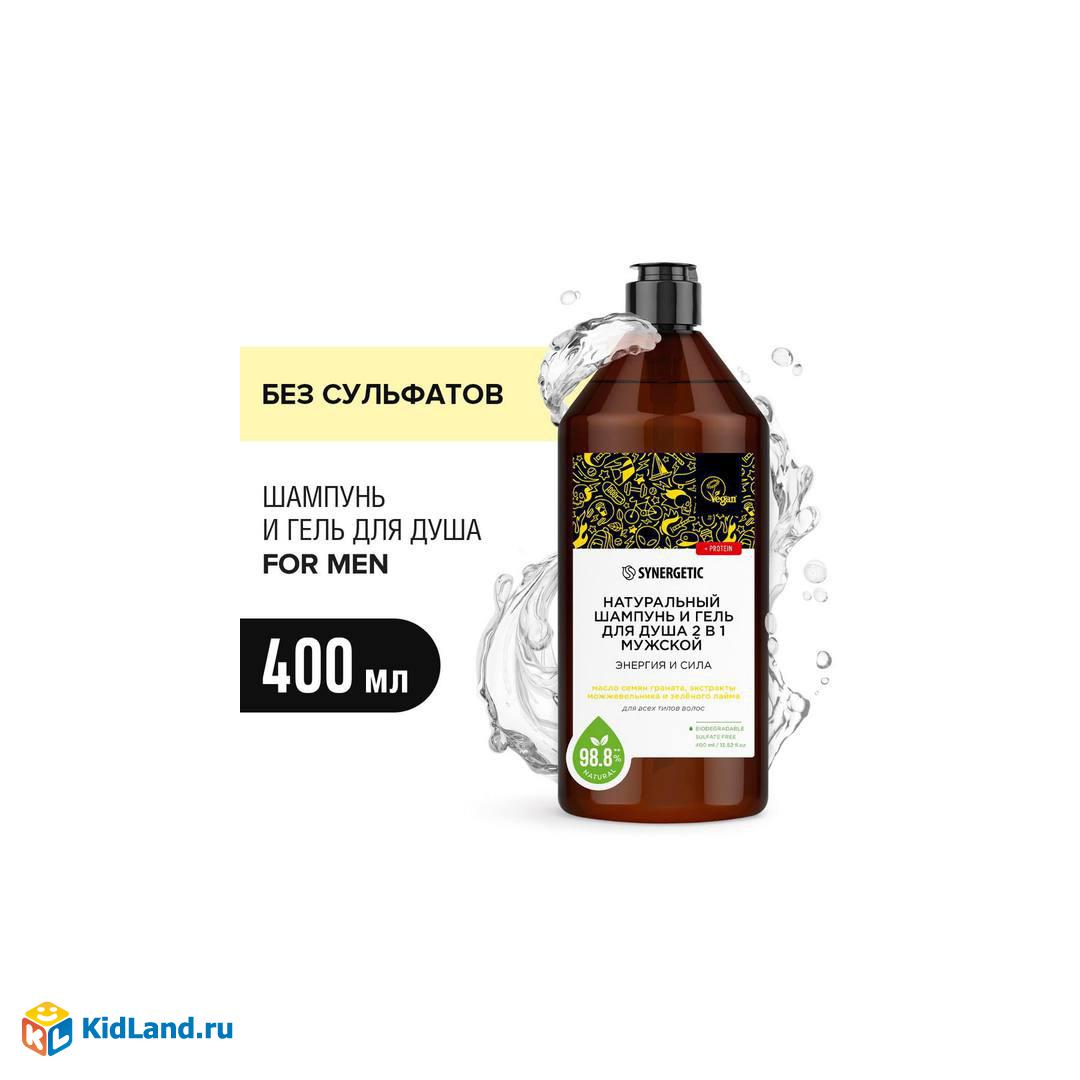 Шампунь и гель для душа 2 в 1 SYNERGETIC Энергия и сила, мужской, бессульфатный 750мл
