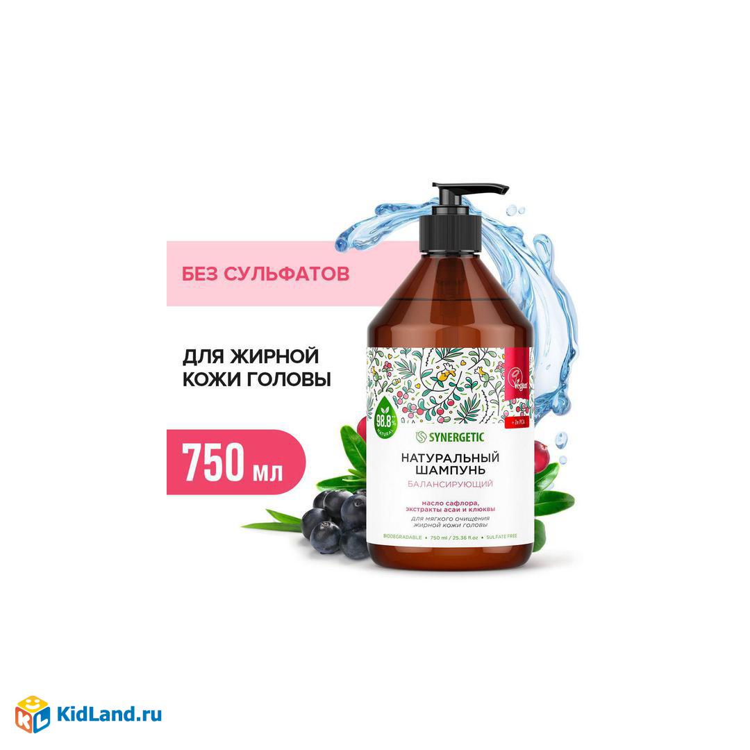 Шампунь SYNERGETIC Балансирующий для мягкого очищения жирной кожи головы, бессульфатный 0,75л