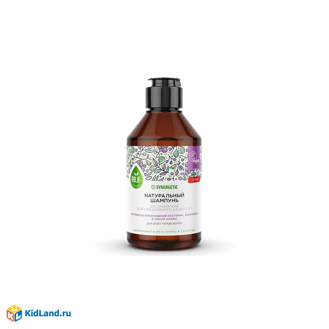 Шампунь SYNERGETIC Экстрамягкий для ежедневного ухода 2в1, бессульфатный 0,25л