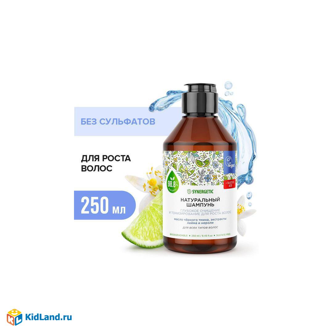 Шампунь SYNERGETIC Глубокое очищение и тонизирование для роста волос. Натуральный, бессульфатный 0,25л
