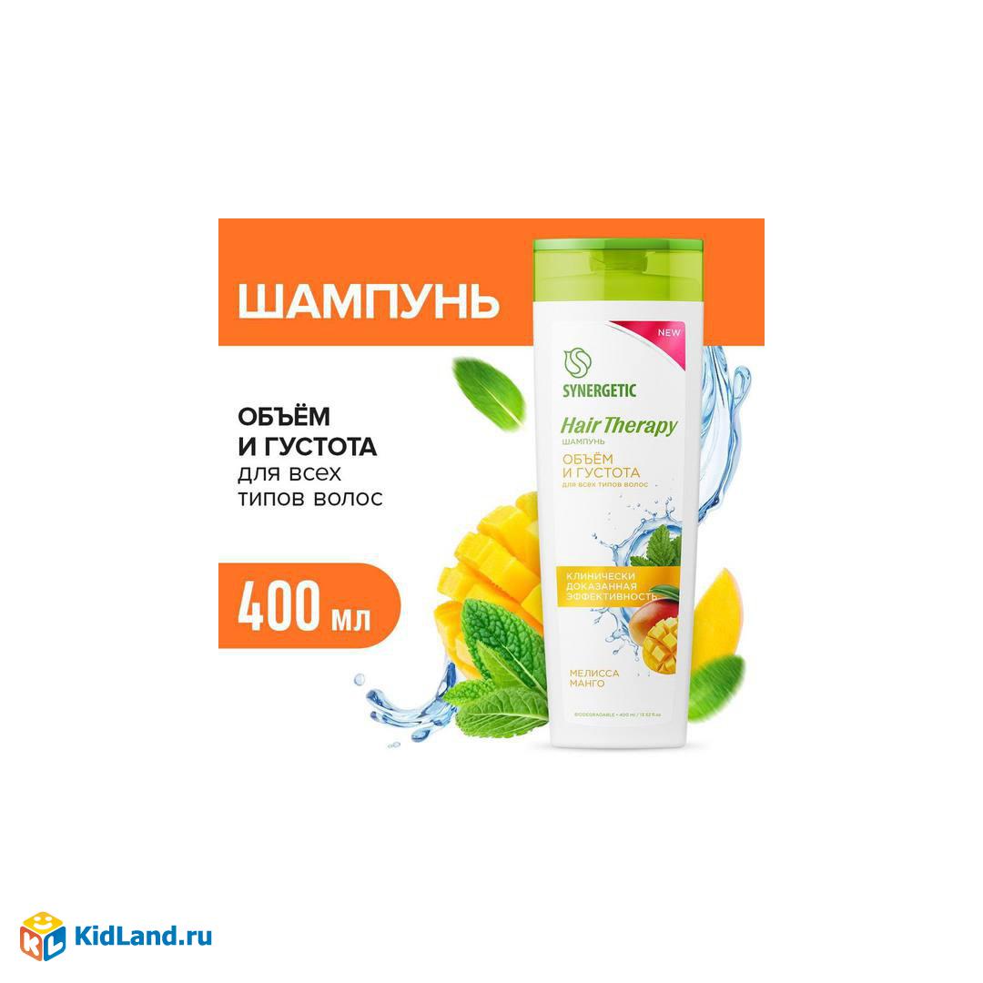 Шампунь SYNERGETIC Объем и густота волос HAIR THERAPY Мелисса и манго 400 мл