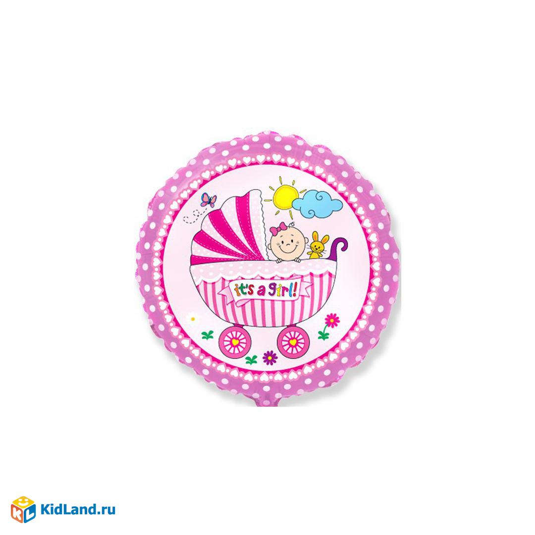 Шар (18""46 см) Круг, Детская коляска для девочки, Розовый, 1 шт