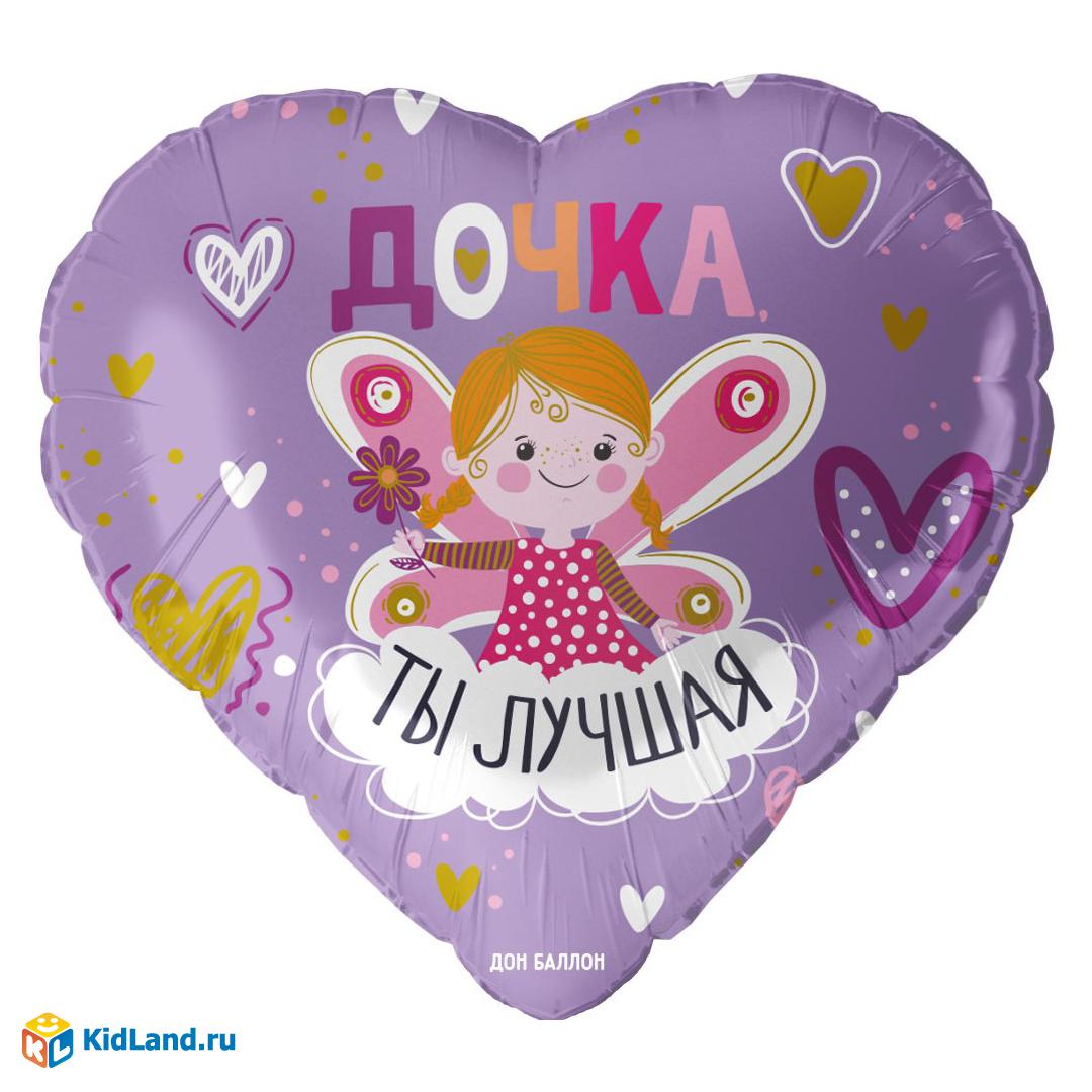 Шар (18""46 см) Сердце, Дочка, Ты Лучшая, Сиреневый, 1 шт в уп, 13463