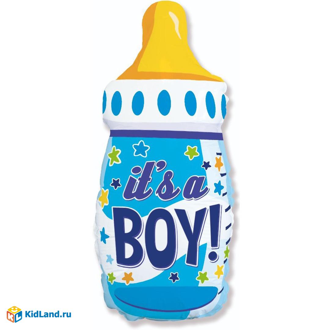 Шар (31""79 см) Фигура, Бутылочка для мальчика (звездочки), Голубой, 1 шт, 901826