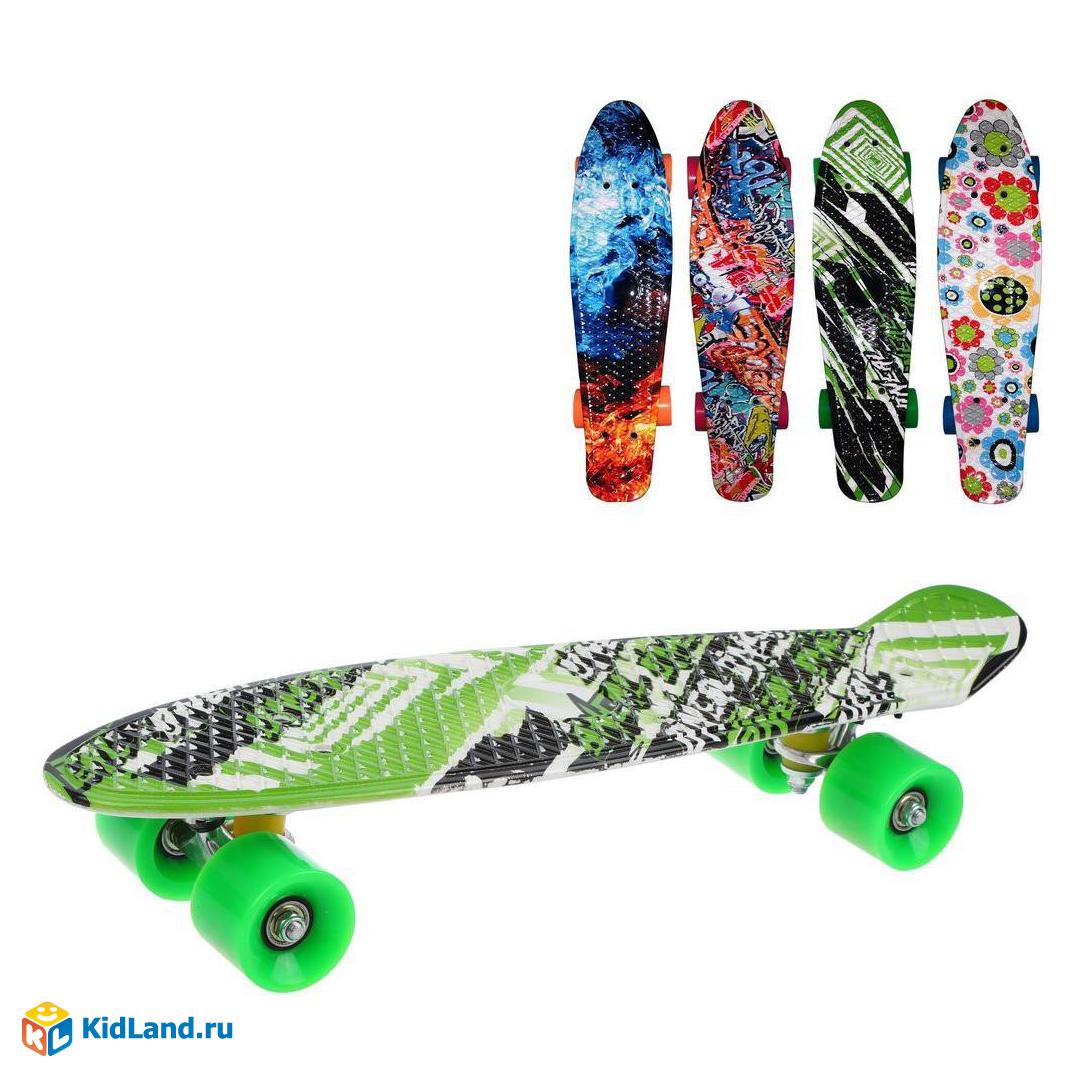 Скейтборд пластик 56 см принт, колеса PU, крепления алюмин., в ассорт.