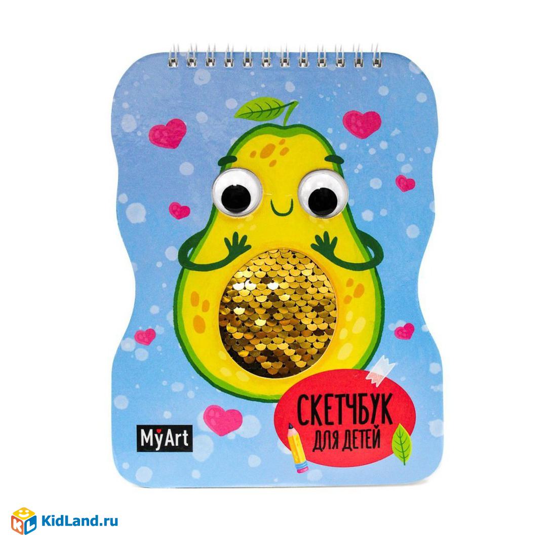Скетчбук для детей на гребне с пайетками Авокадо