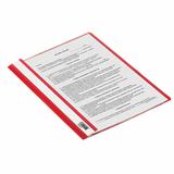 Фиксирует до 100 листов формата А4. Толщина пластика верхнего листа составляет 130 мкм, а нижнего - 180 мкм. Предельно простой механизм подшивки: металлические усики и пластиковая планка для надежной фиксации документов. Скоросшиватель изготовлен из качественного полипропилена. Прозрачный верхний лист позволяет определить содержимое, не открывая скоросшиватель, который к тому же снабжен сменным пластиковым корешком, что дает возможность структурировать информацию. Благодаря фактуре t;песокt; и яркому красному цвету обложки папка никогда не затеряется на полке.