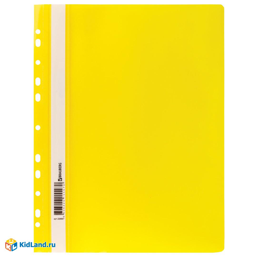 Скоросшиватель пластиковый с перфорацией BRAUBERG, А4, 140180 мкм, желтый, 226587