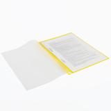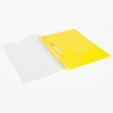 Фиксирует до 100 листов формата А4. Толщина пластика верхнего листа составляет 140 мкм, а нижнего - 180 мкм. Предельно простой механизм подшивки: металлические усики и пластиковая планка для надежной фиксации документов. Мультиперфорация по краю обложки позволяет подшивать изделие в папки с любым механизмом. Скоросшиватель изготовлен из качественного полипропилена. Прозрачный верхний лист позволяет определить содержимое, не открывая скоросшиватель, который к тому же снабжен сменным пластиковым корешком, что дает возможность структурировать информацию. Благодаря фактуре t;песокt; и яркому желтому цвету обложки папка никогда не затеряется на полке.