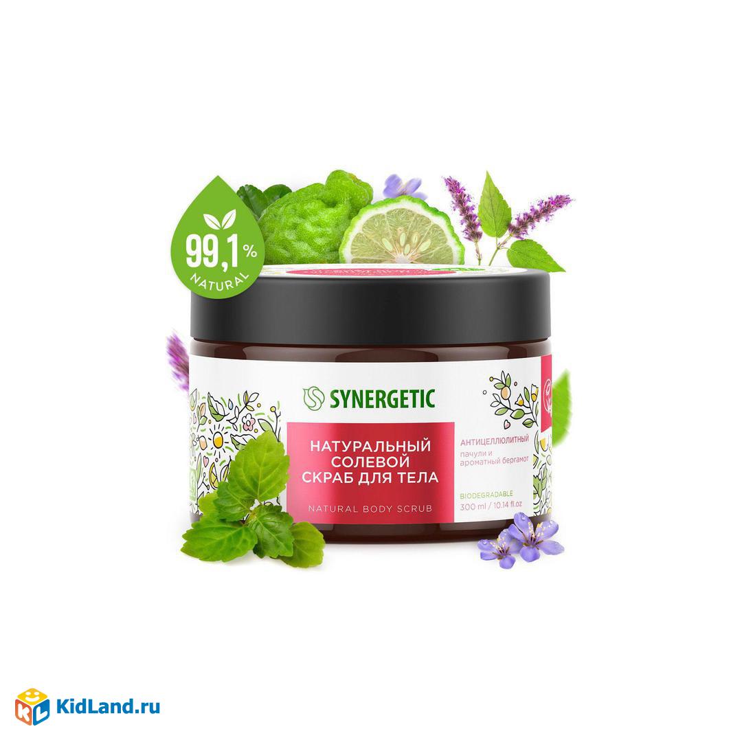 Скраб для тела SYNERGETIC Антицеллюлитный, Пачули и аромат бергамота, солевой натуральный 300мл