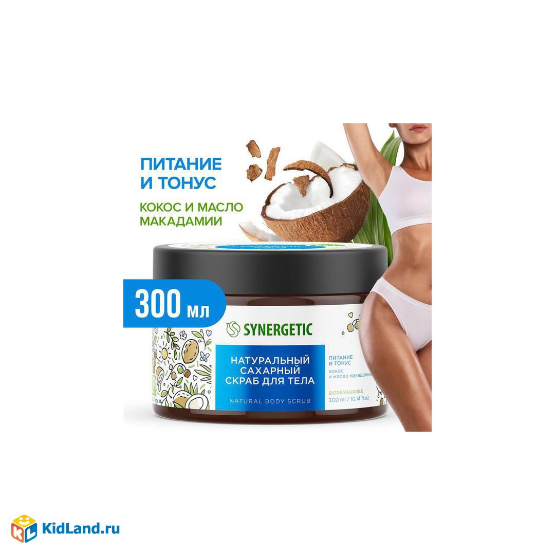 Скраб для тела SYNERGETIC питание и тонус «Кокос и масло макадамии» сахарный 300мл
