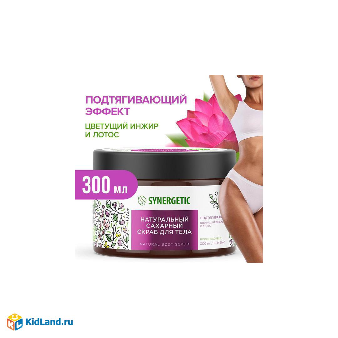 Скраб для тела SYNERGETIC Подтягивающий, Цветущий инжир и лотос, сахарный натуральный 300мл