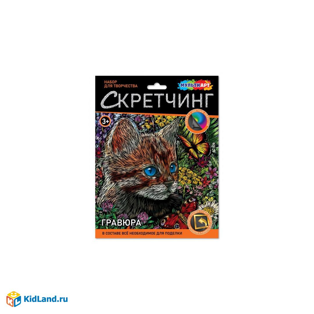 Набор для творчества — скретчинг гравюра «Котик с бабочкой» ТМ «Мульти Арт» — отличный подарок для ребёнка, который будет способствовать развитию его творческих способностей: