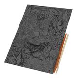 Скретчинг гравюра представляет собой цветную картину на чёрном фоне. Чтобы картина приобрела цвет, необходимо по контуру рисунка, который уже нанесён на основу, процарапать изображение специальным штихелем. Можно не повторять каждую черточку, главное — соблюдать направление штриха! Готовая поделка станет отличным вариантом для подарка близким или для украшения интерьера комнаты.