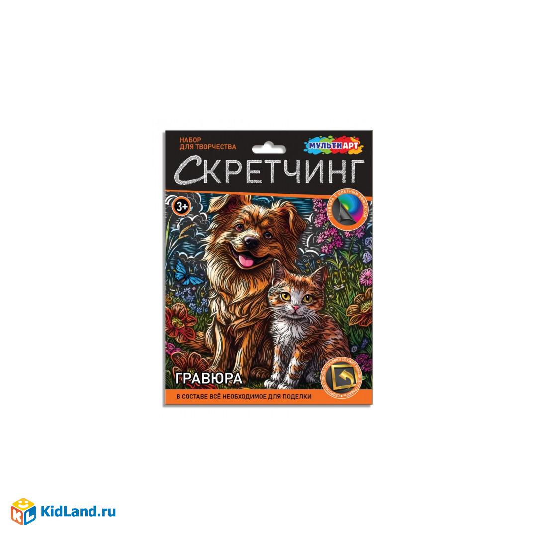 Набор для творчества — скретчинг гравюра «Пёс и кот» ТМ «Мульти Арт» — отличный подарок для ребёнка, который будет способствовать развитию его творческих способностей: