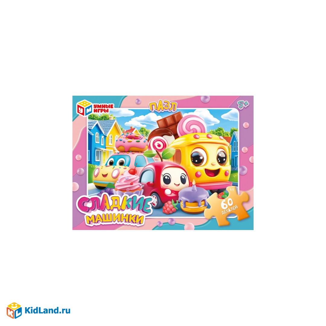 Сладкие машинки. Пазлы в коробке 60 деталей. 190х141х35 мм. Умные игры