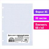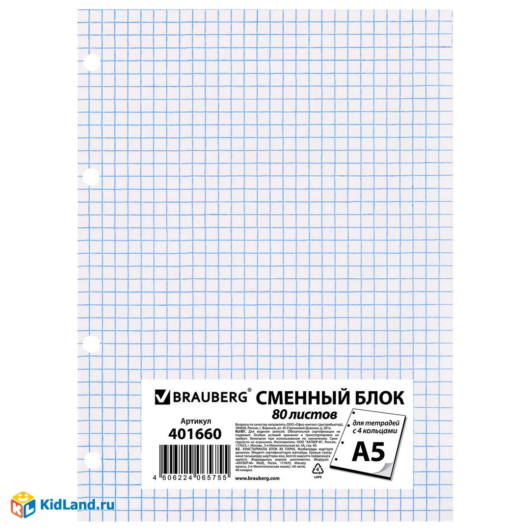Сменный блок к тетради на кольцах А5 80л BRAUBERG, Белый, 401660