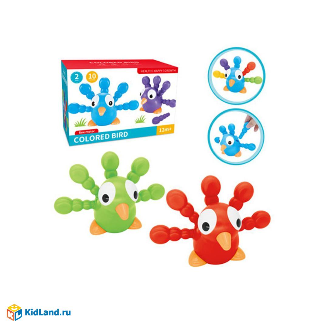 Этот сортер выполнен в виде яркой птички. В набор входят 2 птички и 10 перышек. Задача малыша - распределить все перышки по отверстиям, чтобы получился хвостик.