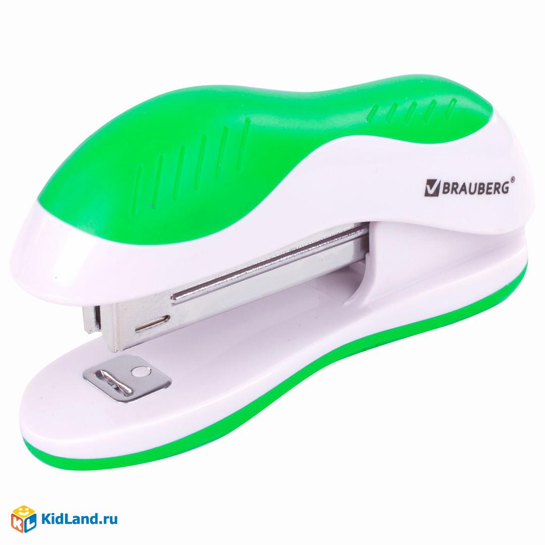Степлер №10 BRAUBERG "JET", до 15 листов, эргономичный, бело-зеленый, 228580