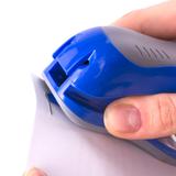 Способен скрепить до 15 листов. Стандартный размер скоб №10. Глубина закладки бумаги - 45 мм. Виды сшивания: закрытый, прямой. Данная модель может выступать в качестве антистеплера, позволяющего разжать закрепленные скобы более качественно, не нанося повреждений ни материалу, ни кончикам пальцев. За счет компактных размеров не займет на рабочем столе много места. Имеет стильный дизайн, комбинированный цвет и эргономичную форму корпуса.