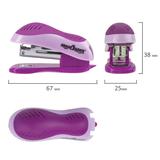 Для скрепления до 15 листов. Размер скоб №10. Глубина закладки бумаги - 25 мм. Закрытый вид сшивания. Эргономичная форма корпуса обеспечивает продолжительное время использования без перерыва. Данная модель может выступать в качестве антистеплера, позволяющего разжать закрепленные скобы более качественно, не нанося повреждений ни материалу, ни кончикам пальцев. За счет компактных размеров не займет на парте или столе много места, а сочетание фиолетового с сиреневым цветом добавят яркости во время уроков или написания домашней работы.