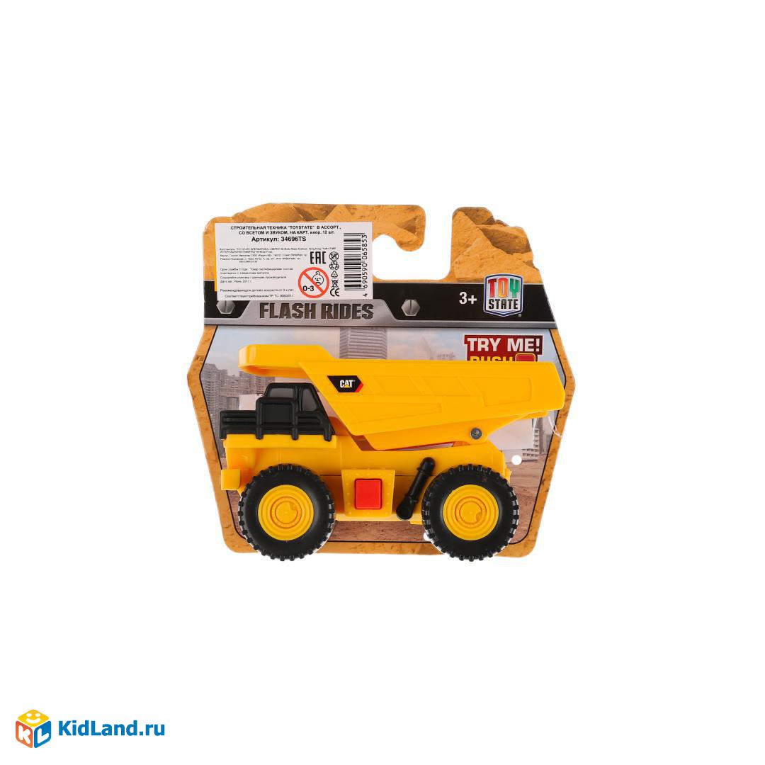 СТРОИТЕЛЬНАЯ ТЕХНИКА "TOYSTATE" СВЕТ+ЗВУК, В АССОРТ. НА КАРТ. в кор.12шт Бульдозер "Flash Rides" выглядит почти как настоящий. Он выполнен из прочного пластика чёрного и жёлтого цветов, оснащён подвижным ковшом. На крыше установлена красная кнопка. При нажатии на неё воспроизводятся различные звуки, а также загораются две лампочки в верхней части кабины. В процессе игры развивается мелкая моторика, воображение и образное мышление. Рекомендовано для детей от 3 лет. Звуковые и световые эффекты работают от 2 батареек типа LR44.
