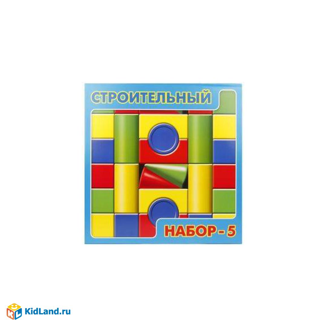 Строительный набор-5 включает 30 элементов разной формы и цвета: 16 кубиков, 4 конуса, 4 арки, 4 цилиндра и 2 полуцилиндра. Из них ребёнок может построить всё, что ему подскажет фантазия - это может быть домик, замок, крепость, гараж для машинок и многое другое.