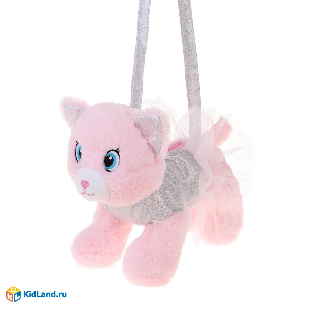 Эта чудесная сумочка от ТМ Fluffy Family выполнена в виде милого котёнка. Аксессуар будет не только удобным средством переноски нужных мелочей, но и прелестным акцентом в образе девочки. Котёнок выполнен в нежно-розовом цвете, у него серебристые ушки, голубые глазки и розовый носик. Молния, открывающая доступ к внутреннему отделению, расположена на спинке игрушечного котика. Аксессуар снабжен текстильным ремешком.