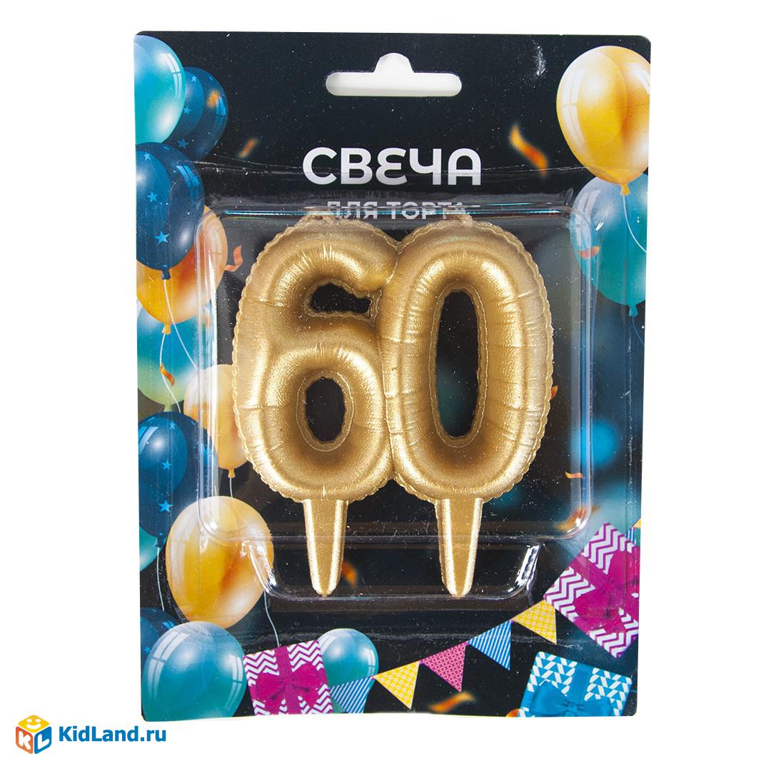 Свеча Цифра, 60 Юбилейные шарики, Золото, 8 см, 1 шт