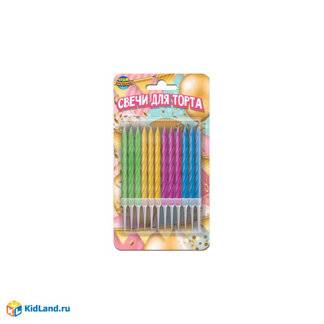Свечи для торта с держателем четыре цвета, 12шт, блистер, воздушные шары ЧУДО ПРАЗДНИК