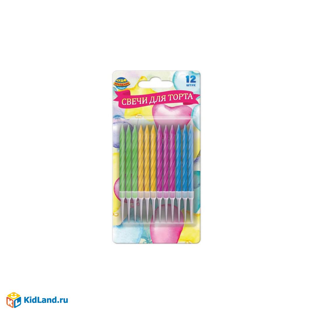 Свечи для торта с держателем четыре цвета, 12шт, блистер, воздушные шары ЧУДО ПРАЗДНИК
