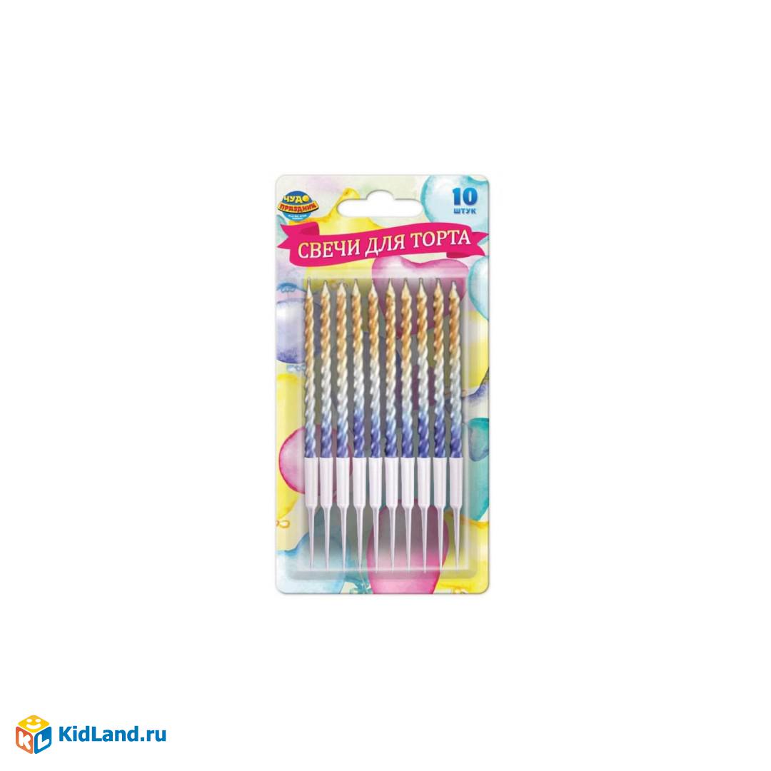 Свечи для торта с держателем градиент,витые,10шт,блистер,воздушные шары ЧУДО ПРАЗДНИК