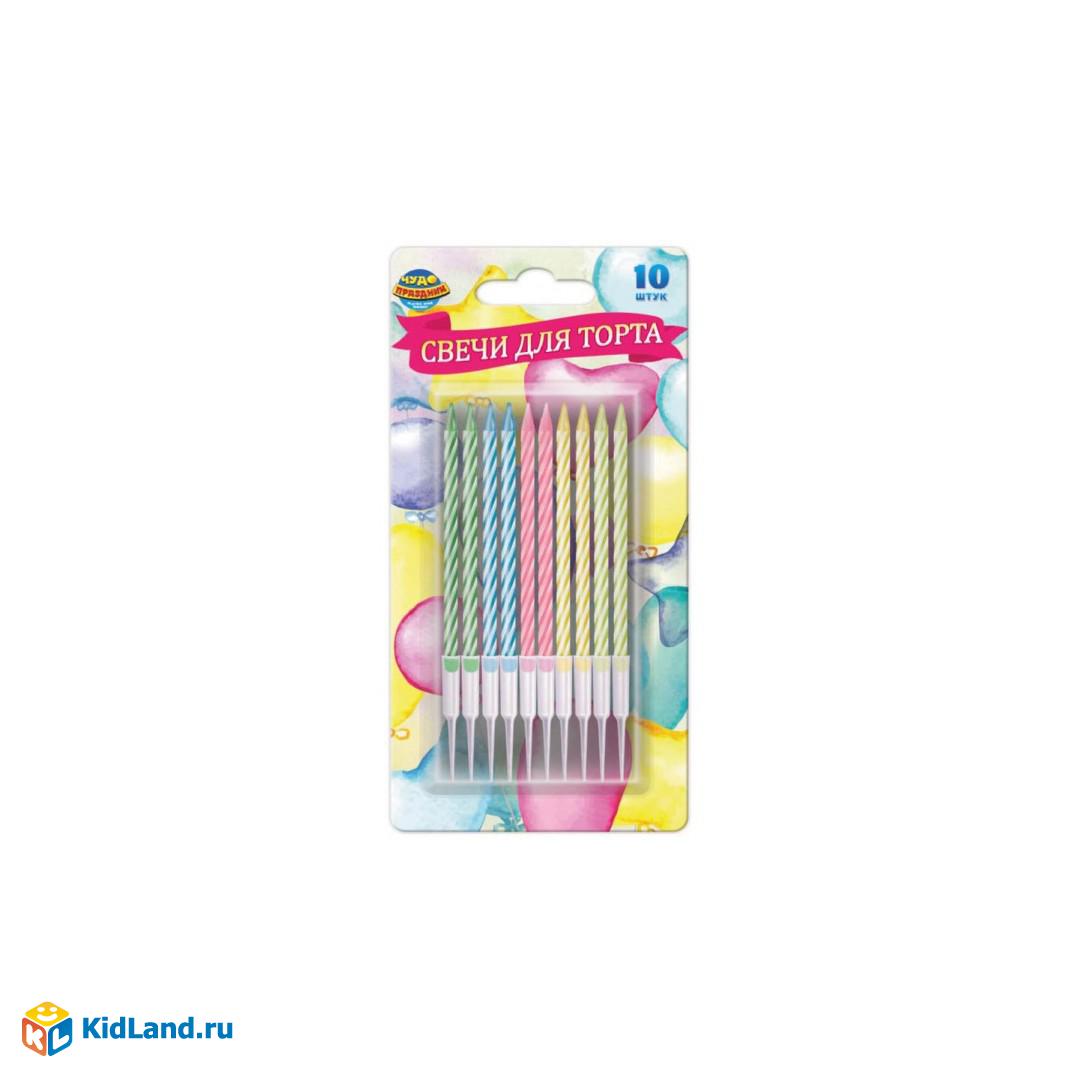 Свечи для торта с держателем пять цветов, 10шт, блистер, шары ЧУДО ПРАЗДНИК