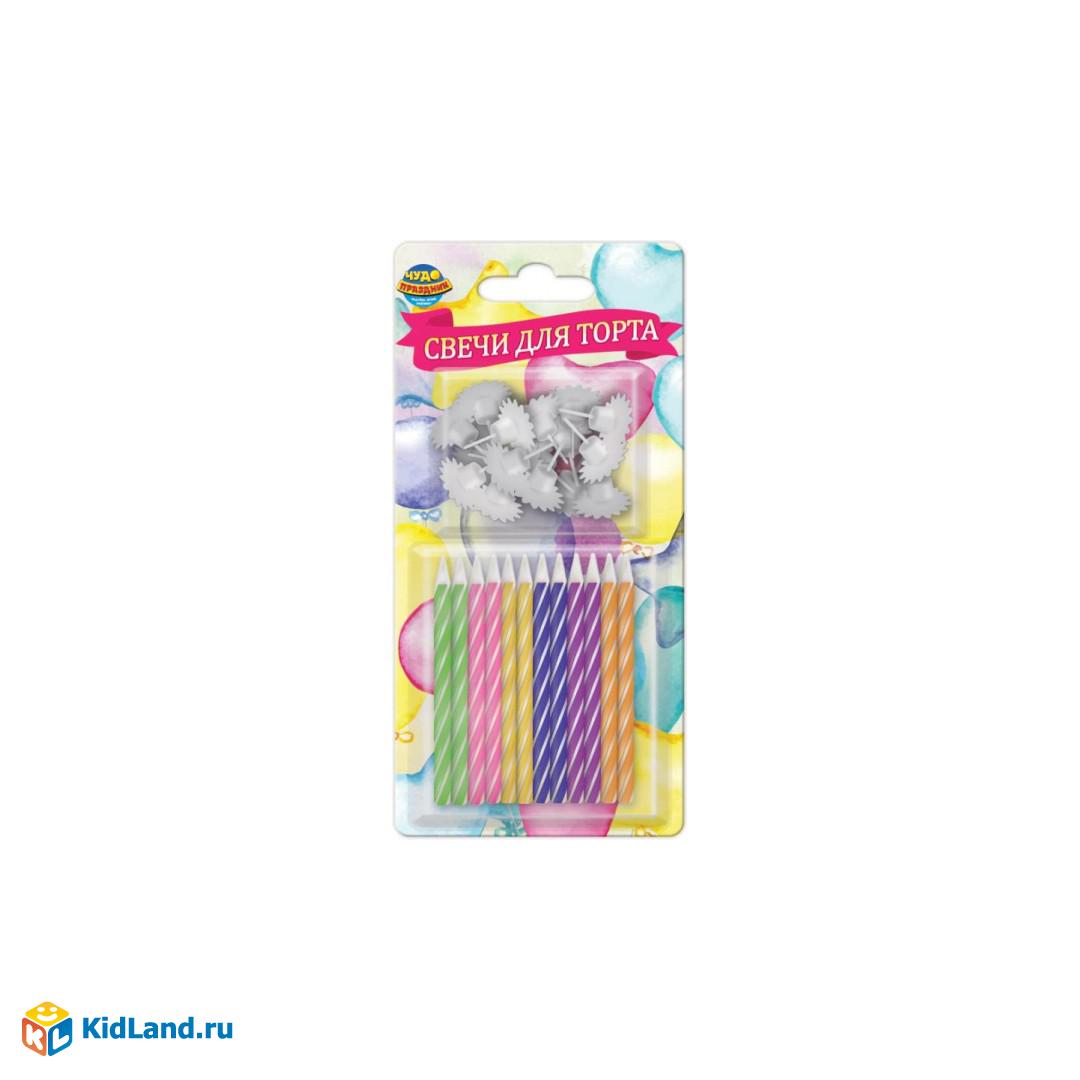 Свечи для торта с держателем разноцветная, 24шт, с днем рождения ЧУДО ПРАЗДНИК наб