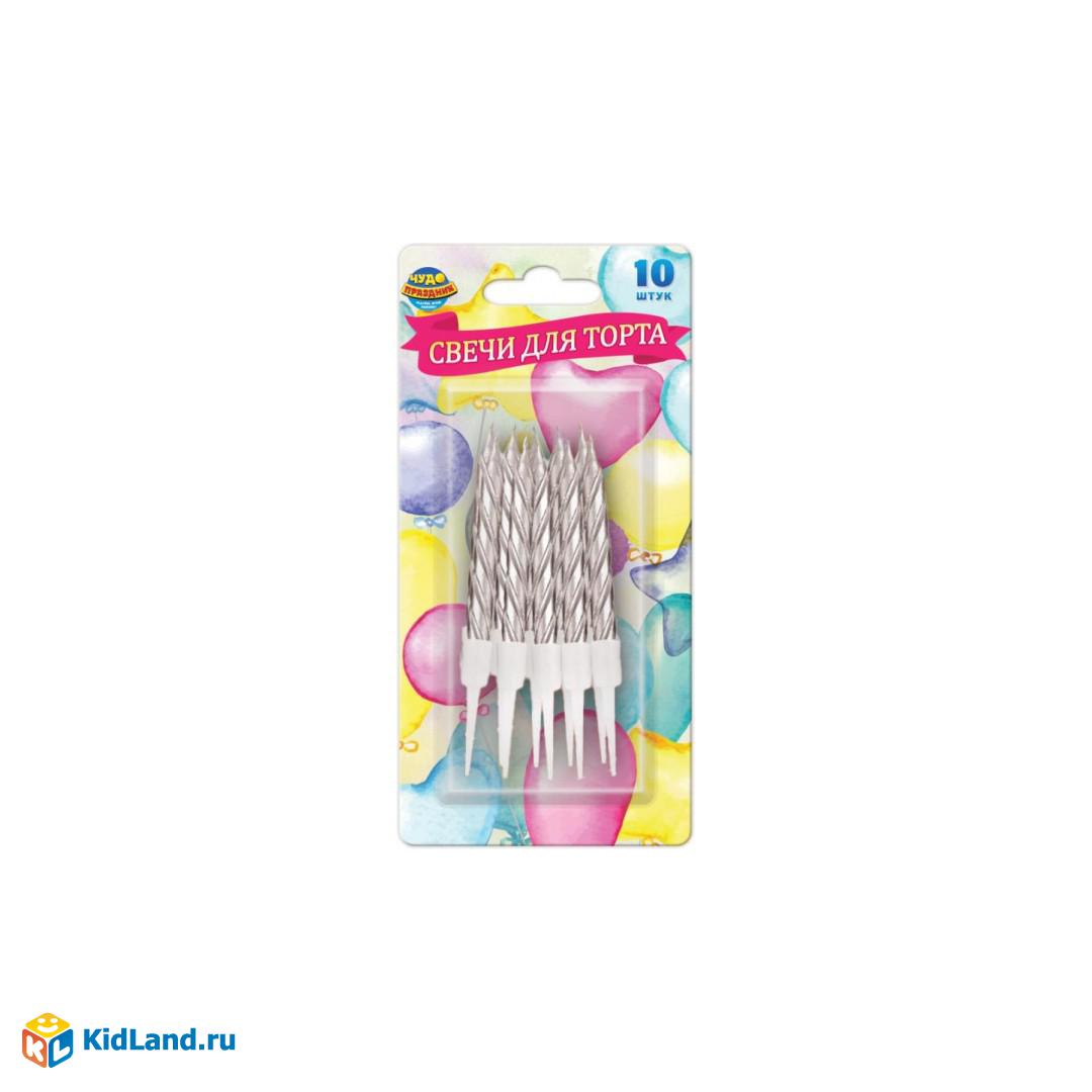 Свечи для торта с держателем витые,серебро,10шт,блистер, воздушные шары ЧУДО ПРАЗДНИК