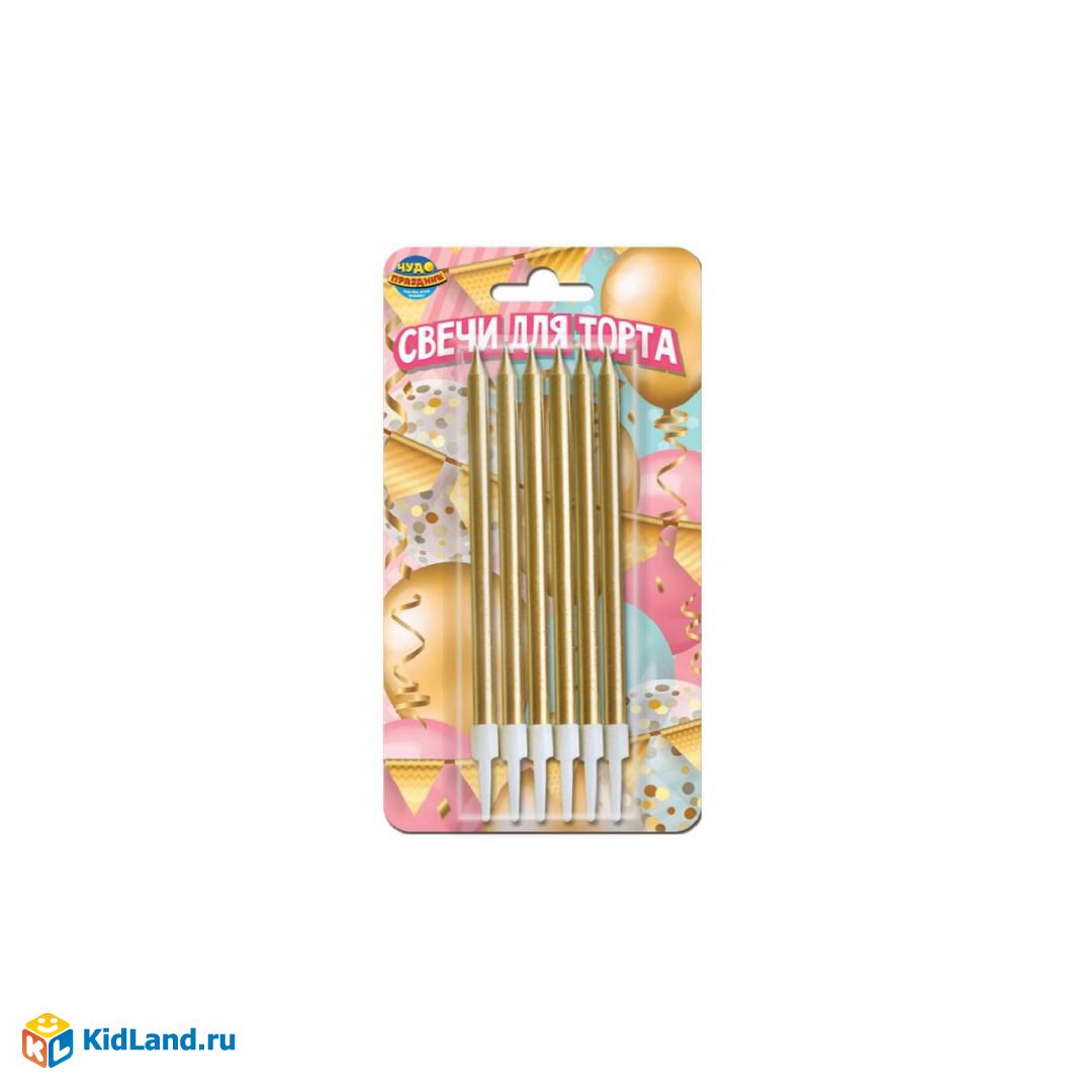 Свечи для торта с держателем золотые, высокие 6шт,блистер,воздушные шары ЧУДО ПРАЗДНИК